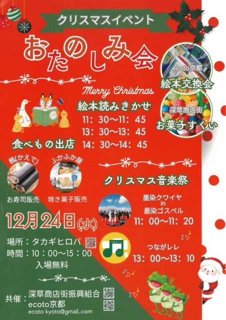 ・12月24日クリスマスイベントおたのしみ会を開催予定。