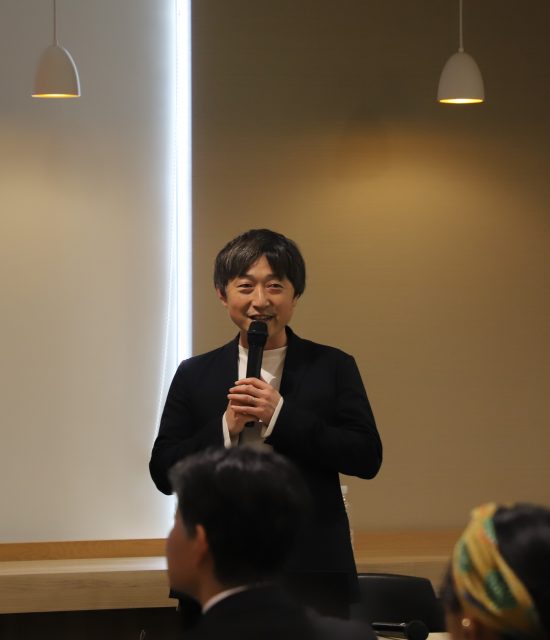 講話では、周囲を巻き込み活動していくうえで大切にしている姿勢として、いい関係性でちょっとだけ巻き込む、ちょっと挑戦できる場をつくる、あの手この手をつかって実践、小さく始めて大きく育てると紹介。