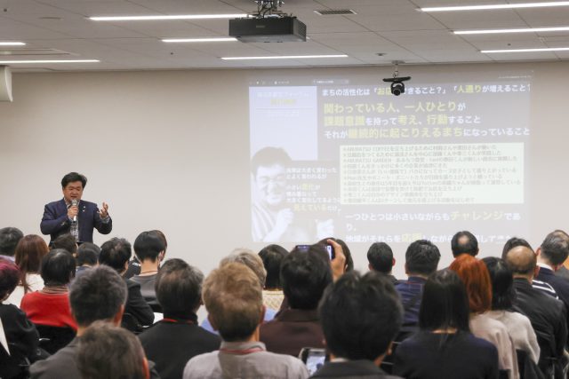 木藤さんは、2018年に初開催したフォーラムの基調講演で、宮崎県日南市・油津商店街再生をまちづくり会社と共に手がけ、かつて地域の憩いの場であった商店街の喫茶店を自ら借金し復活させ、再び地域の人々の集いの場にしました。自らが商店街の店主として地域と関わることで、商店街の信頼を得て外部の若者が参入しやすい環境を構築し、約4年で25を超える新規出店を実現した事例をご紹介いただきました。