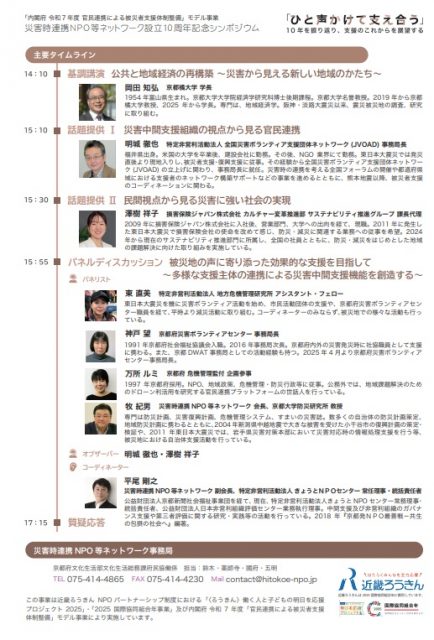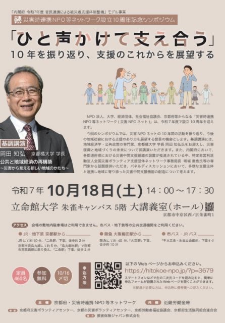 令和7年10月18日(土曜日)『設立10周年記念シンポジウム「ひと声かけて支え合う」10年を振り返り、支援のこれからを展望する』開催のお知らせ