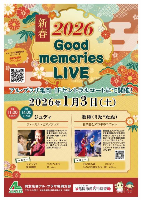 令和8年1月3日(土曜日)新春Good memories LIVE【アル・プラザ亀岡専門店街】