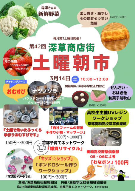 令和8年3月14日(土曜日)第42回 土曜朝市【深草商店街】