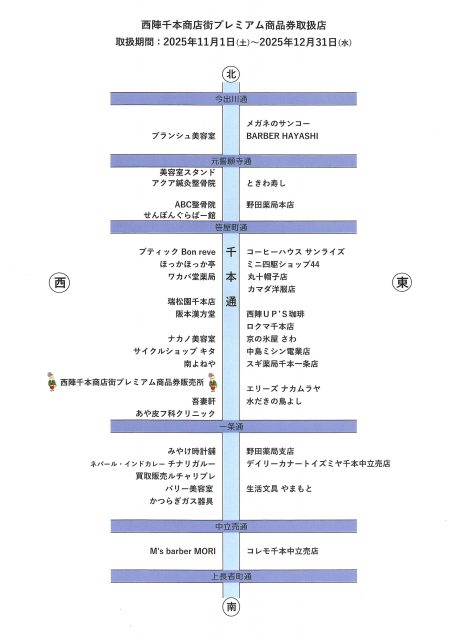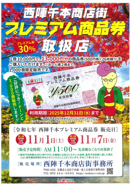 令和7年度11月1日(土曜日)・7日(金曜日)プレミアム商品券販売【西陣千本商店街】