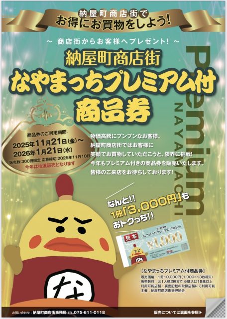 令和7年11月10日(月曜日)まで なやまっちプレミアム付商品券販売【納屋町商店街】