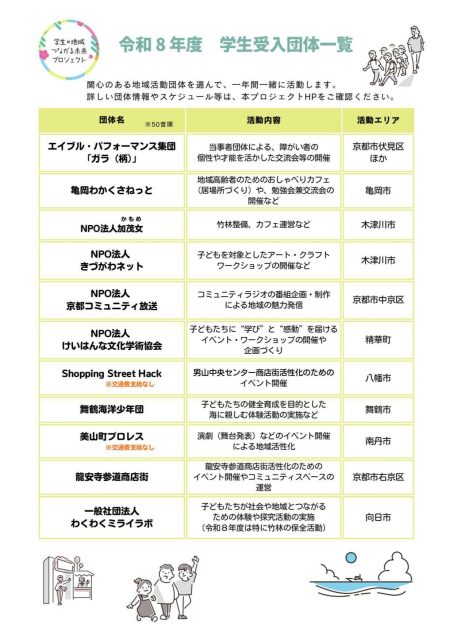 *募集人数:1団体につき約5人 ※京都府外の学生も参加できます。